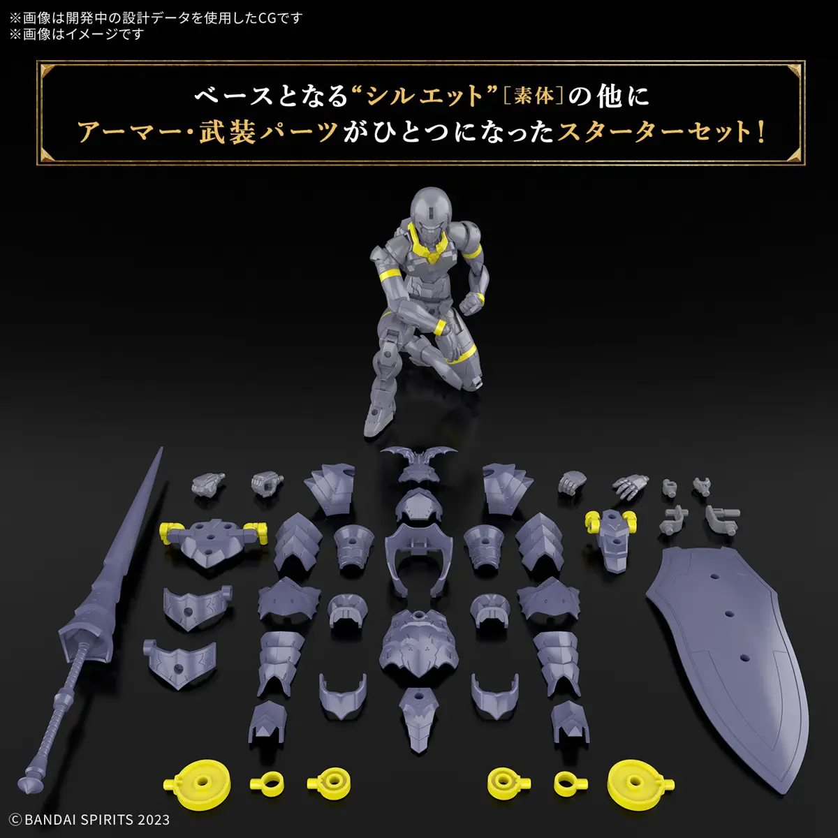 Bandai's "30MF (30 Minutes Fantasy)" figure-kit series allows you to create your own fantasy-based figures and characters! The starter set includes armor and armed parts in addition to the base "silhouette" (elementary body). The body included with the Liber Lancer is the same as the 30MF Liber Knight; the "silhouette" is fully posable like a human body, including movable axes on the head and neck that allow natural flexibility. The shoulder joints are designed with great care to keep the body line intact even in bold poses; the movable axes on the chest, torso, and waist work together with the sliding mechanism at the base of the waist joint to achieve natural poses. Armor and weapon parts are included to combine with the "silhouette" to "change jobs" to that of the Liber Lancer! His weapons are a lance and a shield; flexible movement is achieved by attaching the shoulder and waist armor via the joint on the back. The attribute of the Element Core is "lightning." The face design and color are different from the Rozen Lancer (sold separately). Order him for your own collection today!