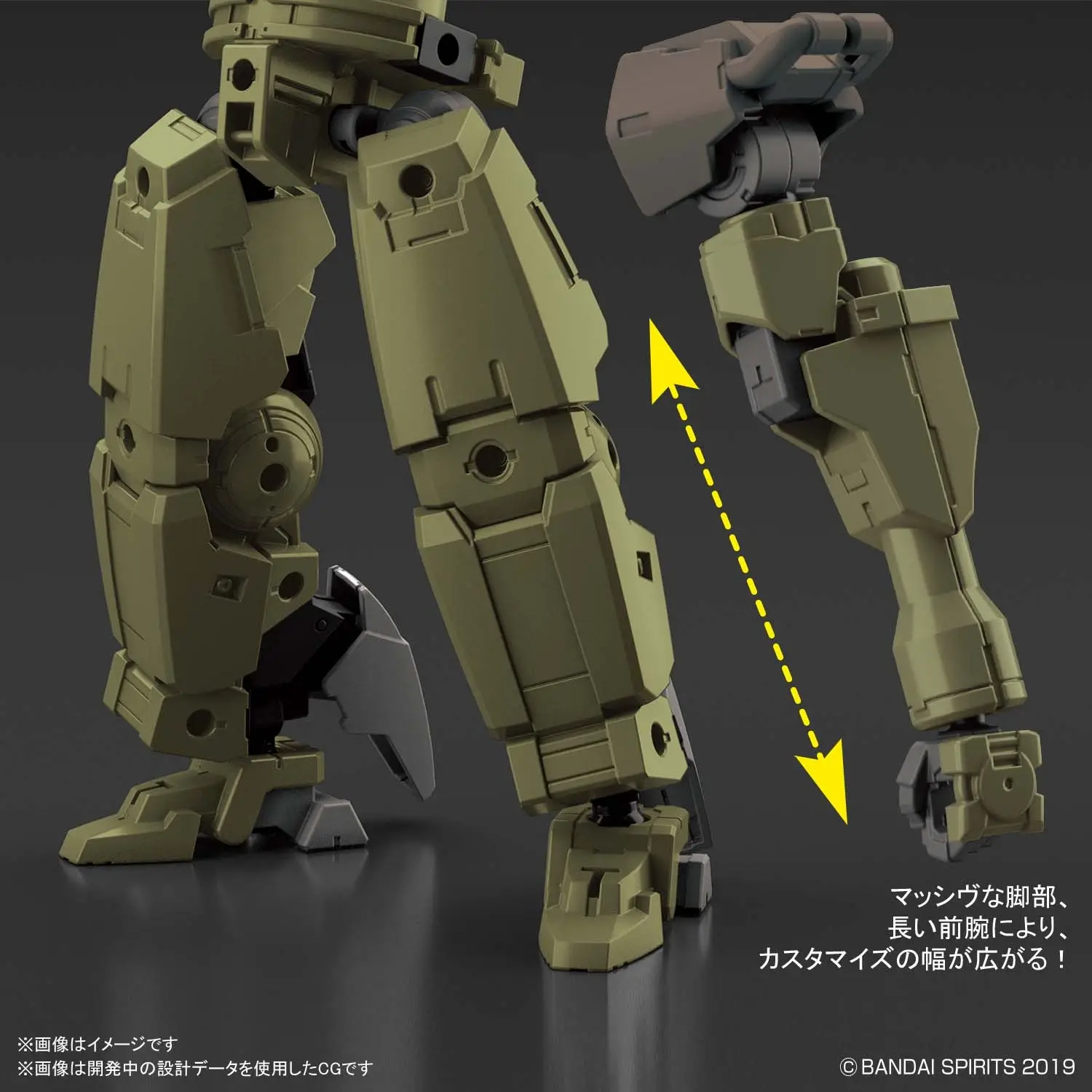 Molded in green, it features massive legs, long forearms, and an expandable backpack. New hip joint parts are included to allow for various arrangements of the body shape, and the chest parts can be switched for various Portanova Option Armor parts (sold separately). Order today, and expand on your 30MM customization options!