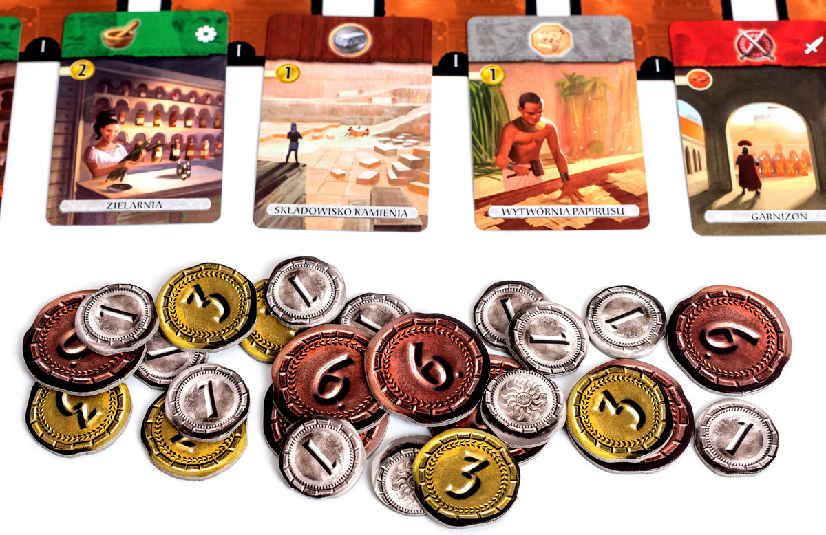 - Zagrywanie wszystkich kart będzie uzależnione od posiadania w swoim mieście odpowiedniej kombinacji brązowych i szarych kart zapewniających dopływ niezbędnych surowców do jego rozbudowy,