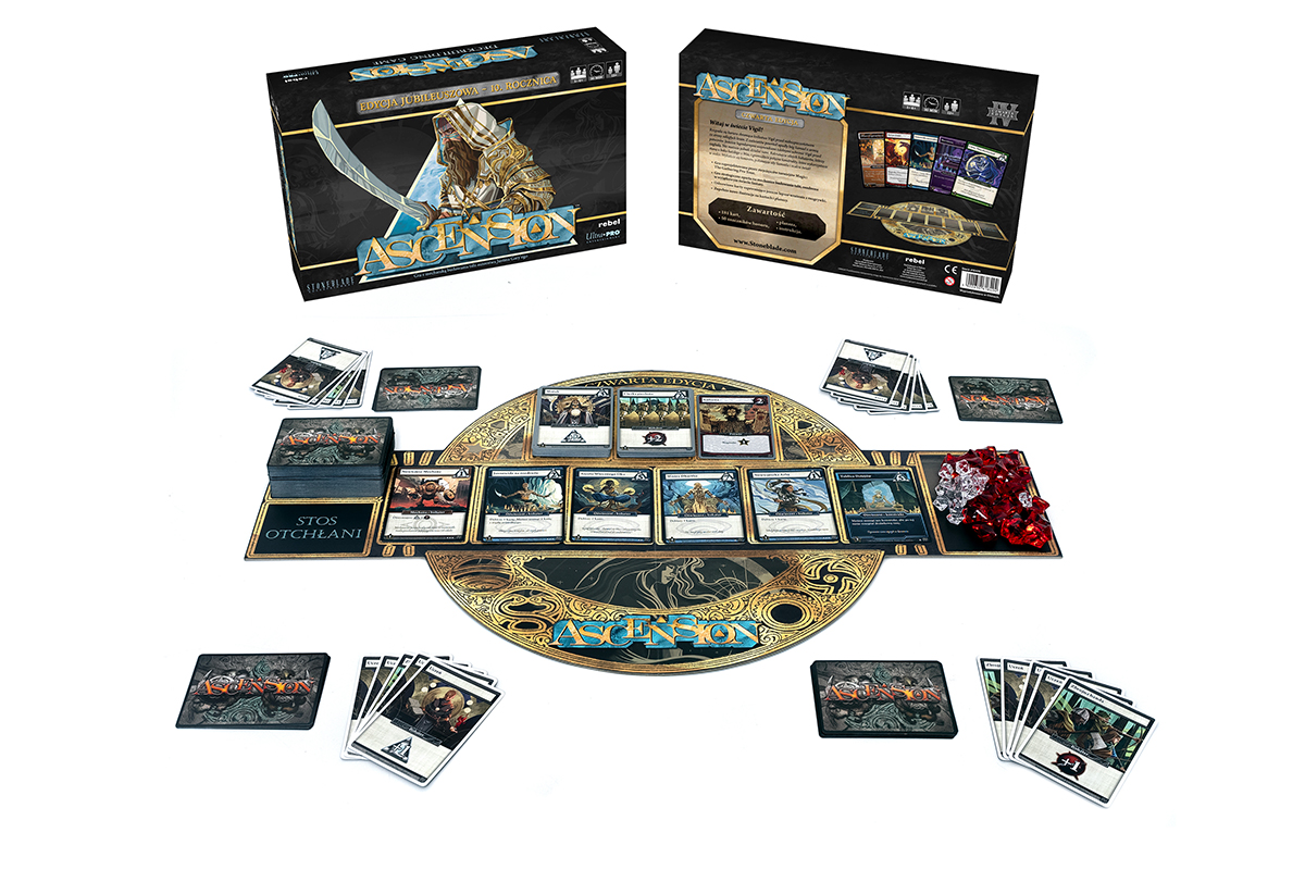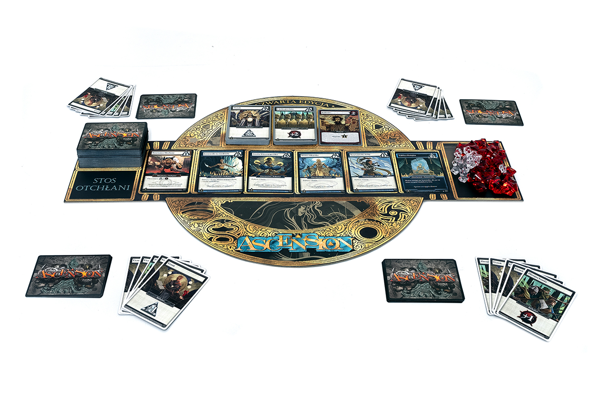 Ascension wykorzystuję mechanikę budowania talii. Każdy uczestnik zaczyna z taką samą talią startową, ale w trakcie rozgrywki będzie ją modyfikował i rozbudowywał, zdobywając silniejsze karty.