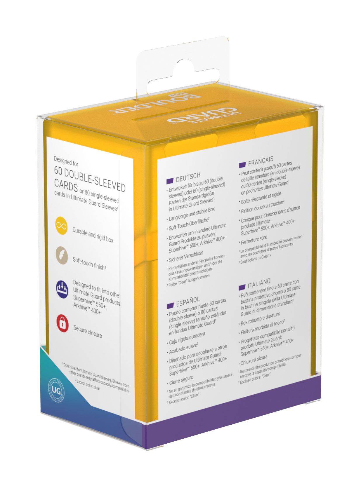 - Designed for 60 double-sleeved or 80 single-sleeved standard sized cards in Ultimate Guard Sleeves