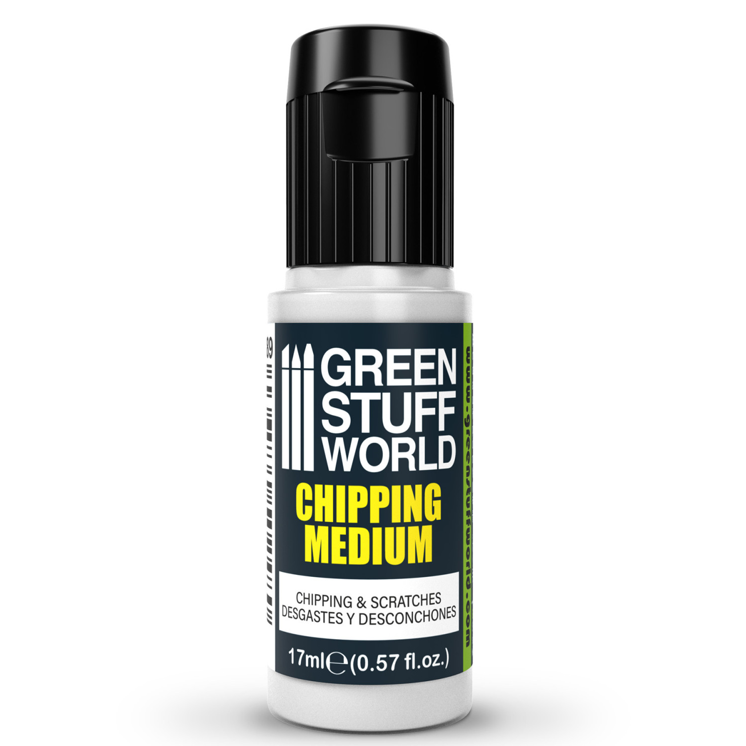 Chipping medium also known as chipping fluid is a specialized product used in the world of scale modeling and miniature painting. It is valid for brush and airbrush and it is designed to assist model enthusiasts in creating realistic weathering effects on scale models, such as model aircraft, tanks, cars, or dioramas. It works by altering the adhesion properties of paint layers, allowing the topcoat to be easily chipped or removed to reveal the underlying layers, simulating the wear and tear that real-life objects experience.