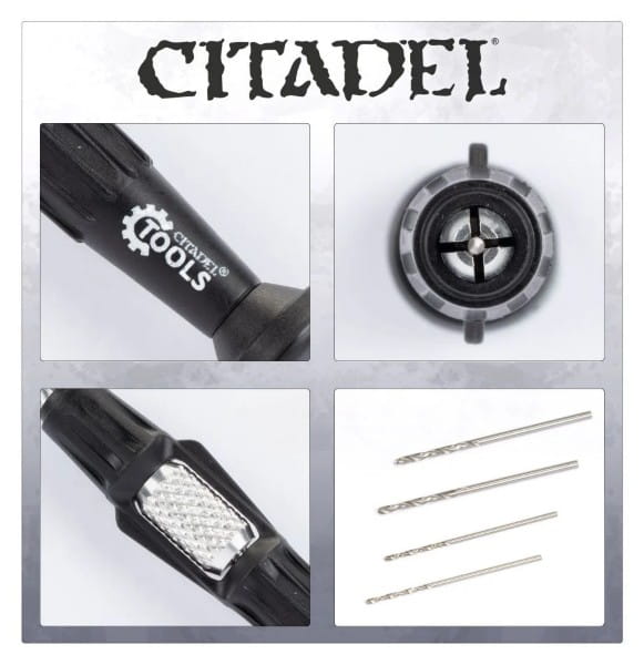 Do you want to drill tiny holes in your miniature gun barrels so they look like they could fire miniature bullets? Want to experiment with pinning hard-to-fix pieces in place when building and converting your miniatures? A reliable drill suitable for use on miniatures can be used in all manner of ways, and the Citadel Tools design team were eager to take on the challenge of redesigning the hobby drill to make it easier and safer to use by incorporating a number of design features: