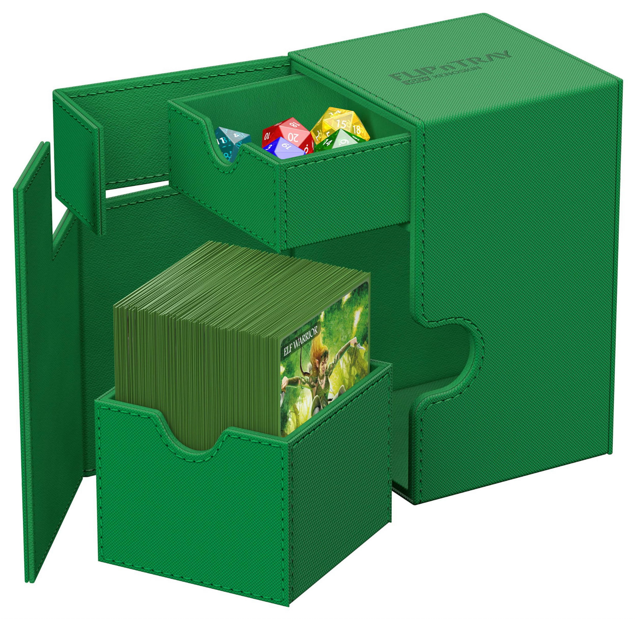 The quintessential Ultimate Guard deck box: a timeless monocolored design with strong magnetic closure, card and dice trays for safe storage of your deck, and a resistant but smooth Xenoskin surface. Looking for additional safety? With room for 100 double-sleeved or 120 single-sleeved cards in standard size, the Flip'n'Tray 100+ has it all.