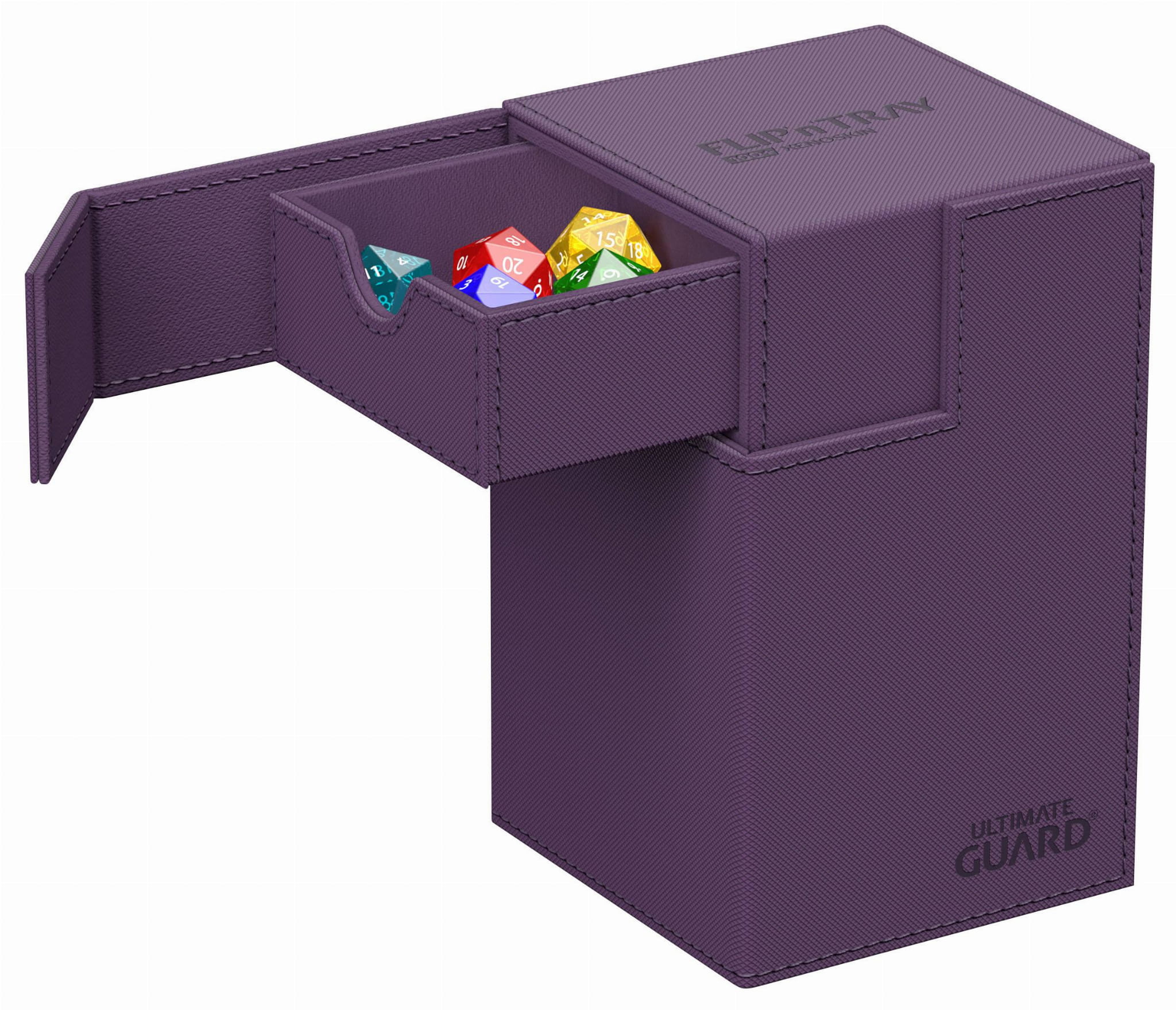 The quintessential Ultimate Guard deck box: a timeless monocolored design with strong magnetic closure, card and dice trays for safe storage of your deck, and a resistant but smooth Xenoskin surface. Looking for additional safety? With room for 100 double-sleeved or 120 single-sleeved cards in standard size, the Flip'n'Tray 100+ has it all.