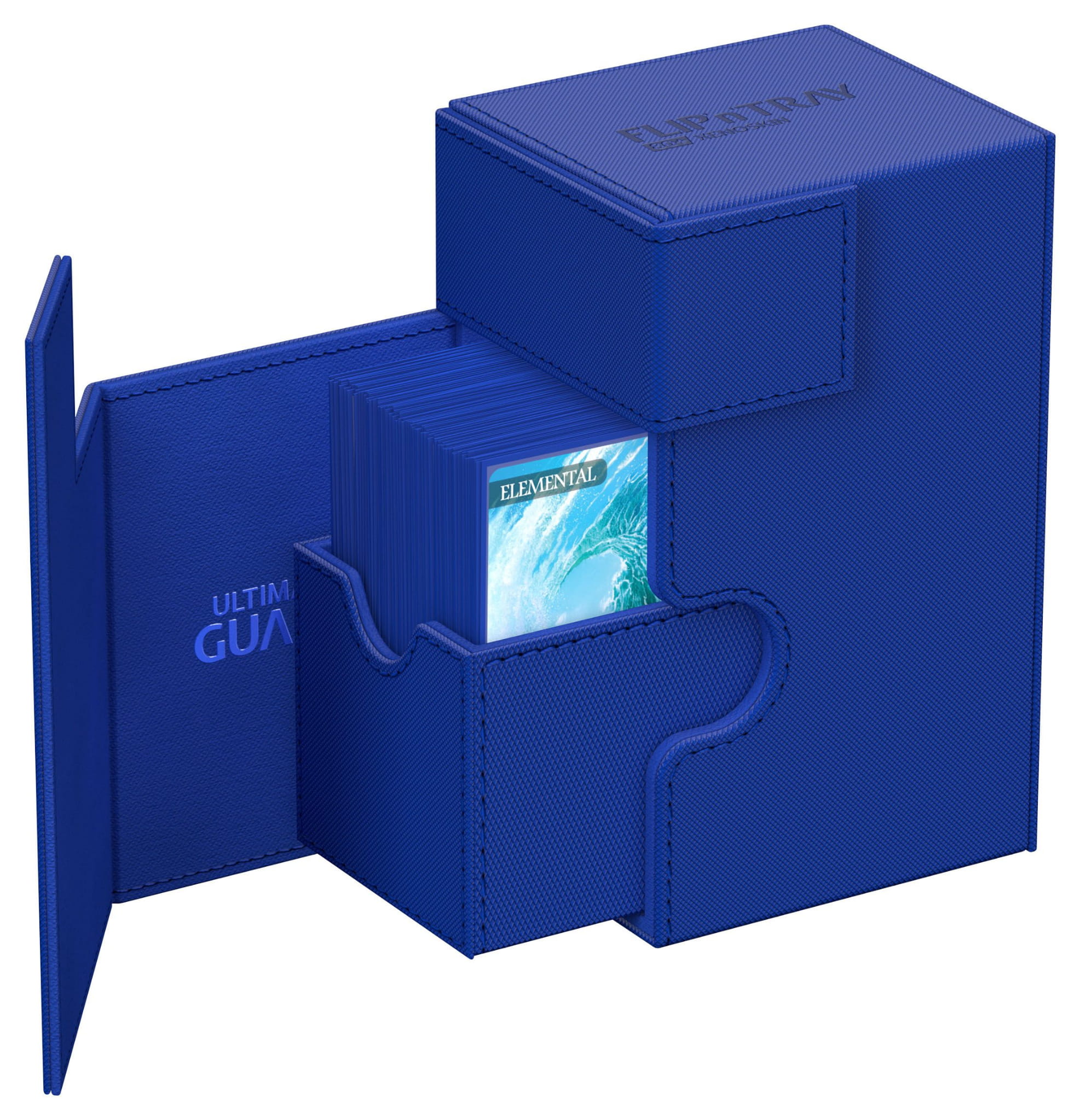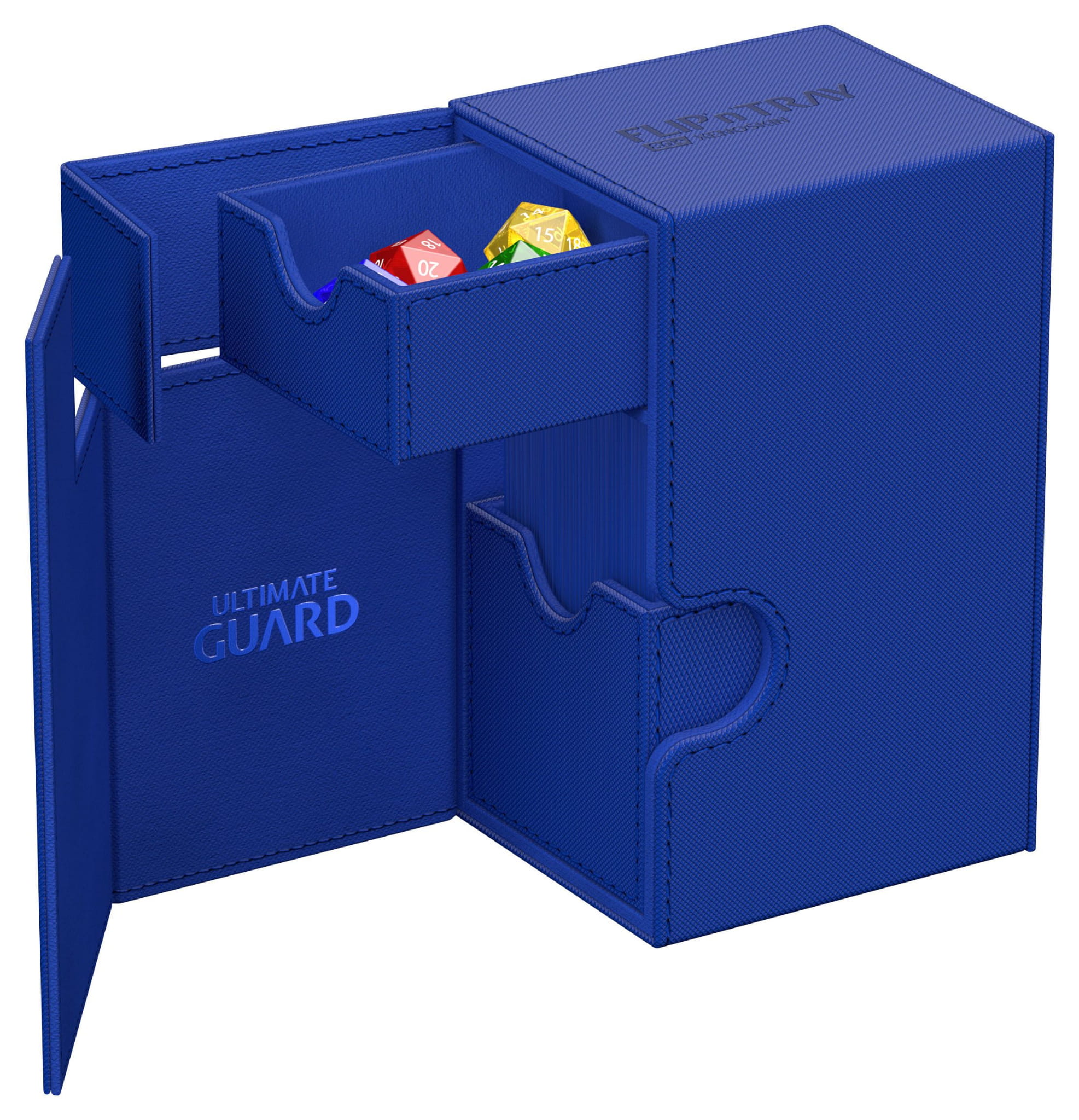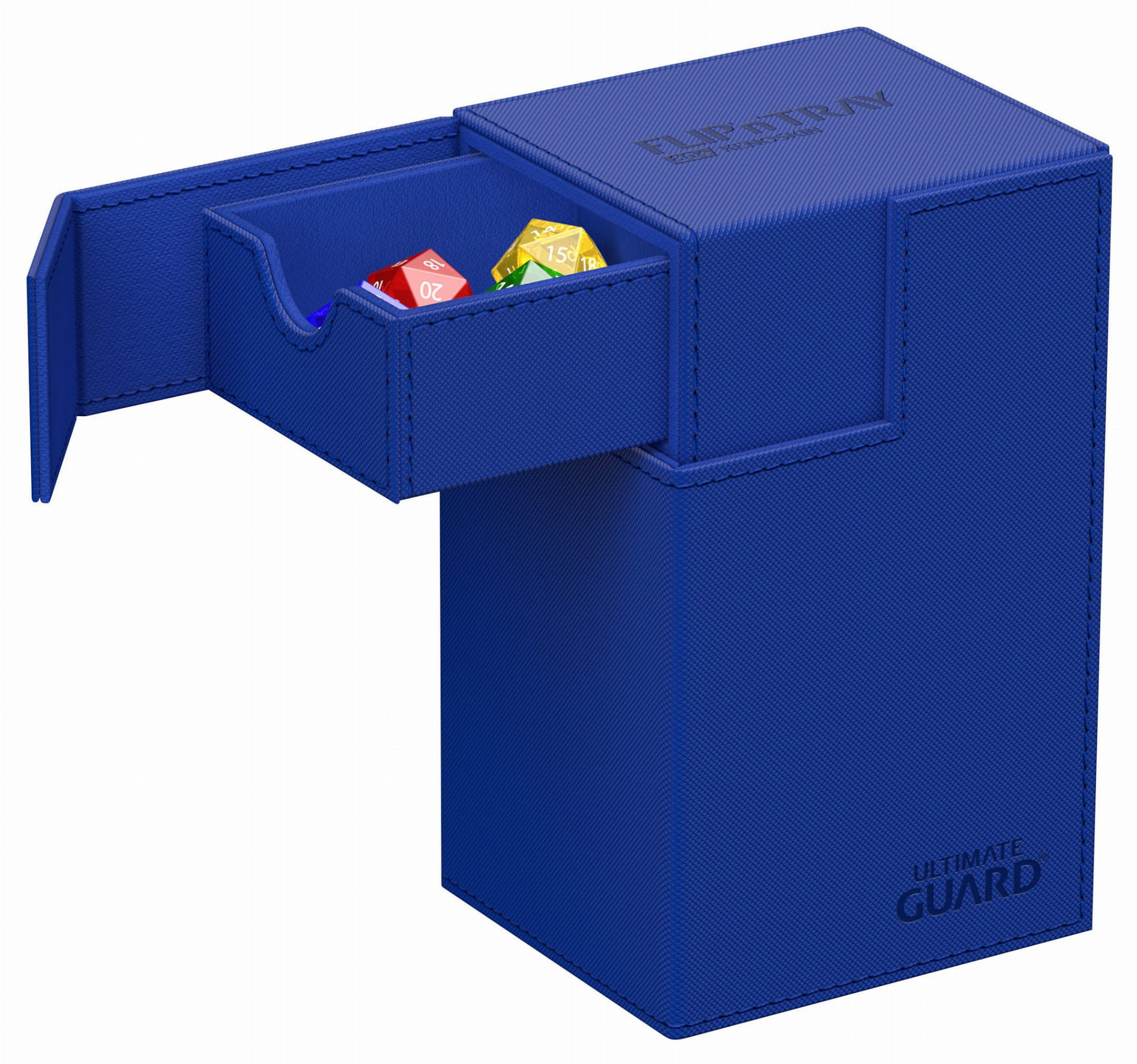 The quintessential Ultimate Guard deck box: a timeless monocolored design with strong magnetic closure, card and dice trays for safe storage of your deck, and a resistant but smooth Xenoskin surface. With room for 80 double-sleeved or 100 single-sleeved cards in standard size, the Flip'n'Tray 80+ has it all.