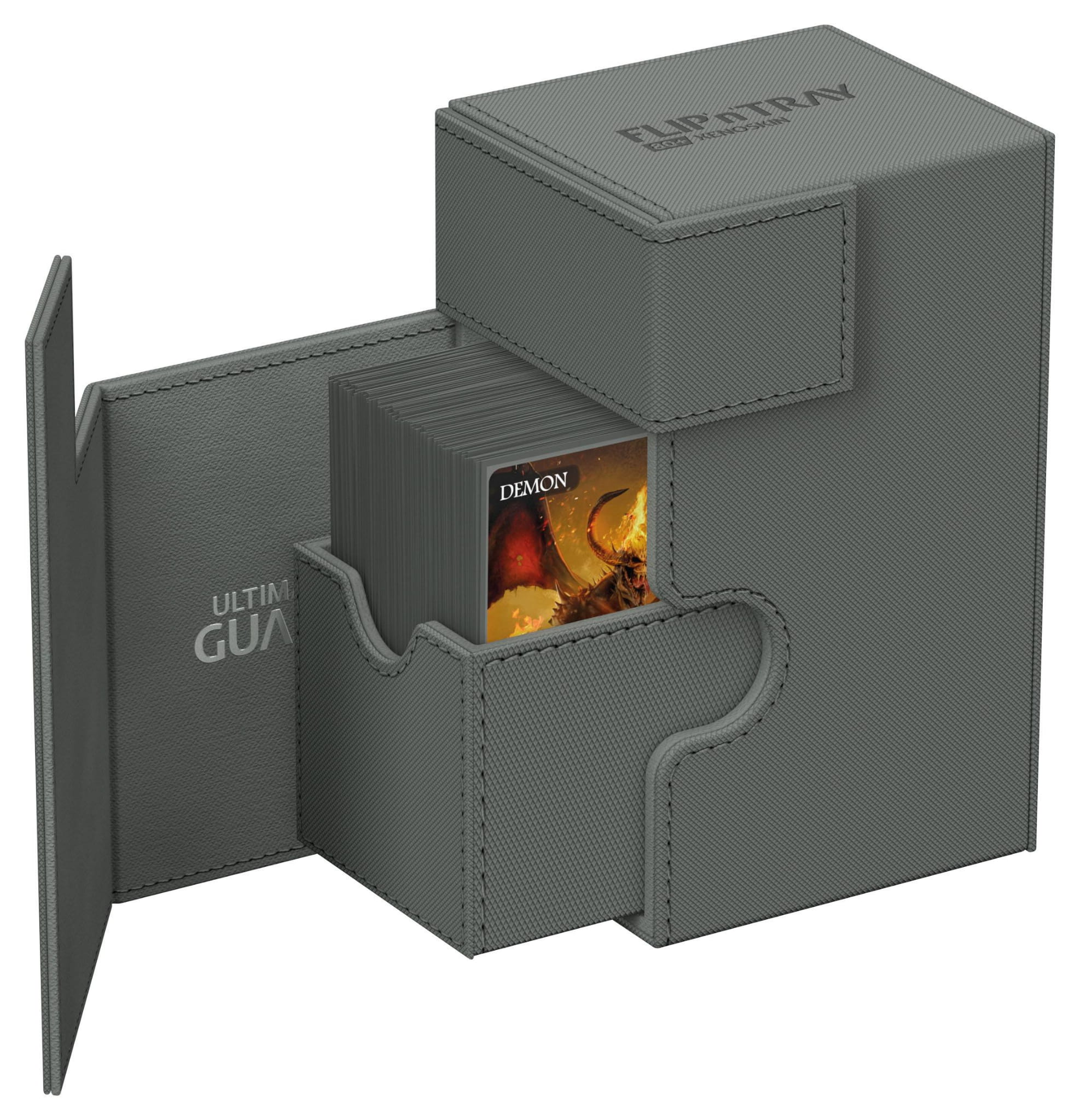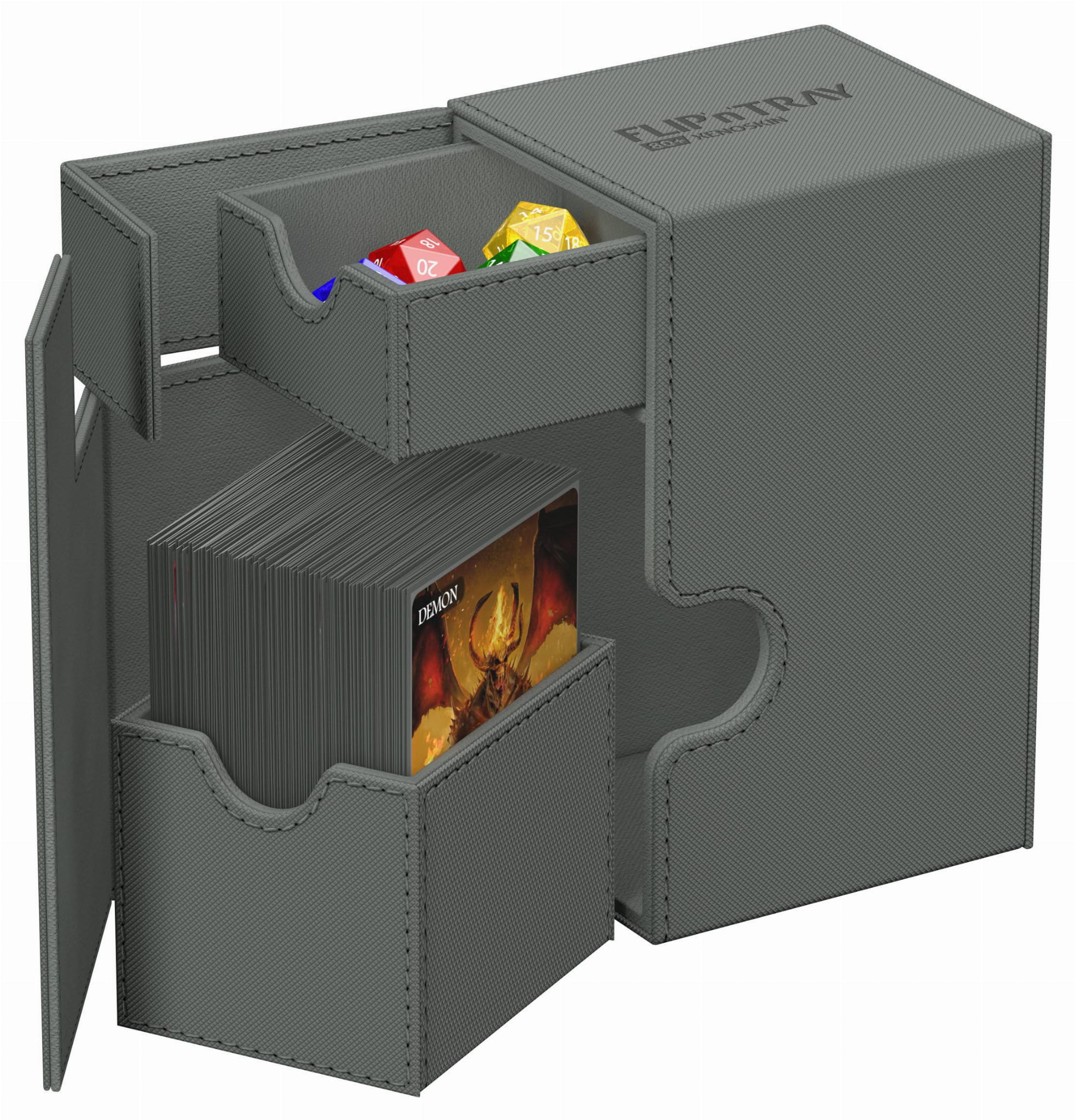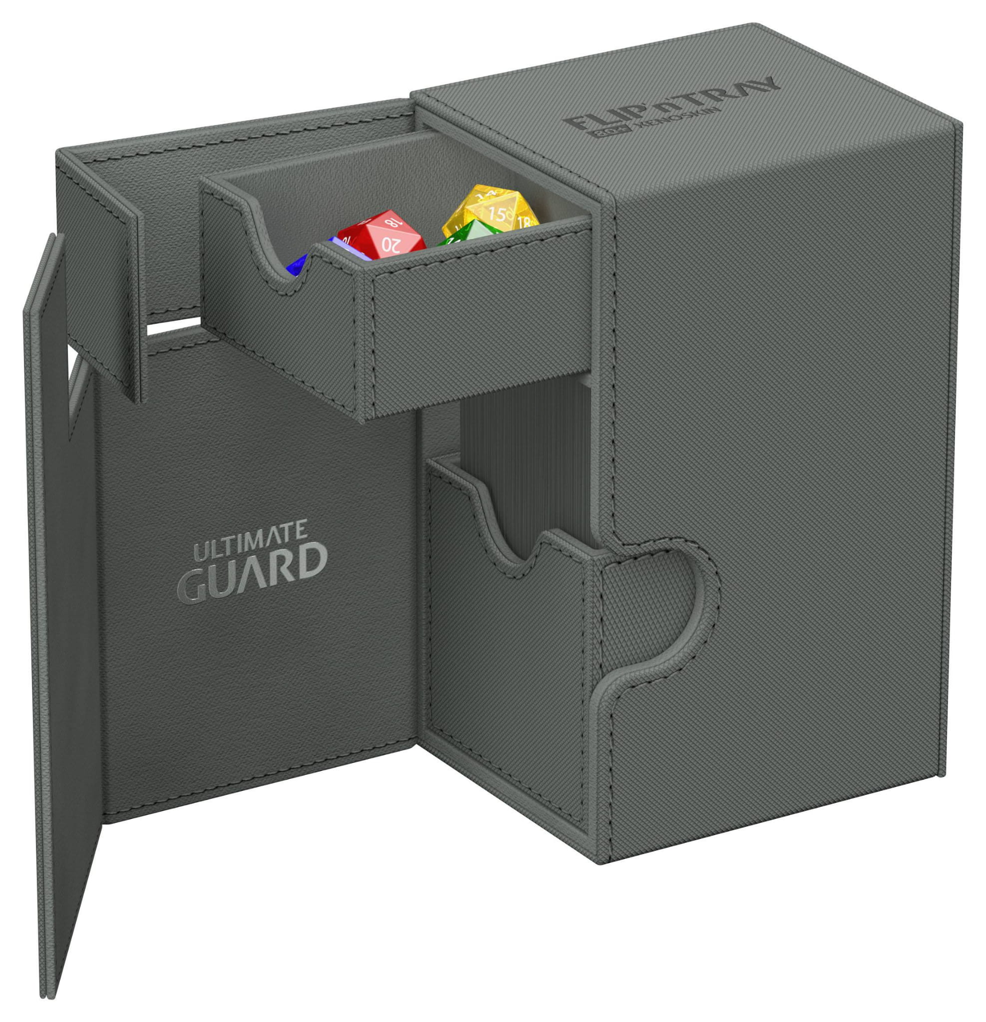 The quintessential Ultimate Guard deck box: a timeless monocolored design with strong magnetic closure, card and dice trays for safe storage of your deck, and a resistant but smooth Xenoskin surface. With room for 80 double-sleeved or 100 single-sleeved cards in standard size, the Flip'n'Tray 80+ has it all.