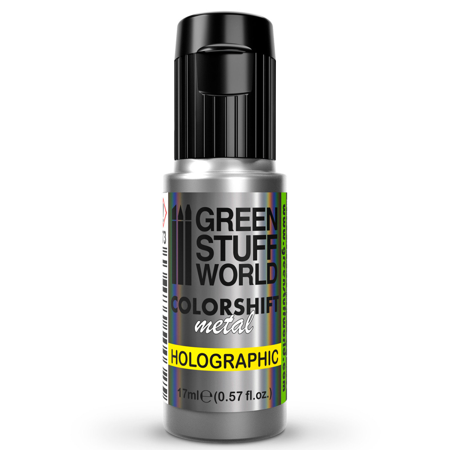 For use, choose any gloss colour for the base coat. The finish will change depending on the amount of layers applied, the more layers the more intense the metallic finish will be, but too many layers may diminish the holographic effect. The microparticles on the surface will reflect the rainbow effect when exposed to any light source. Gloss varnish will increase the effect, whilst matt varnish will diminish it. It is not required to dilute.