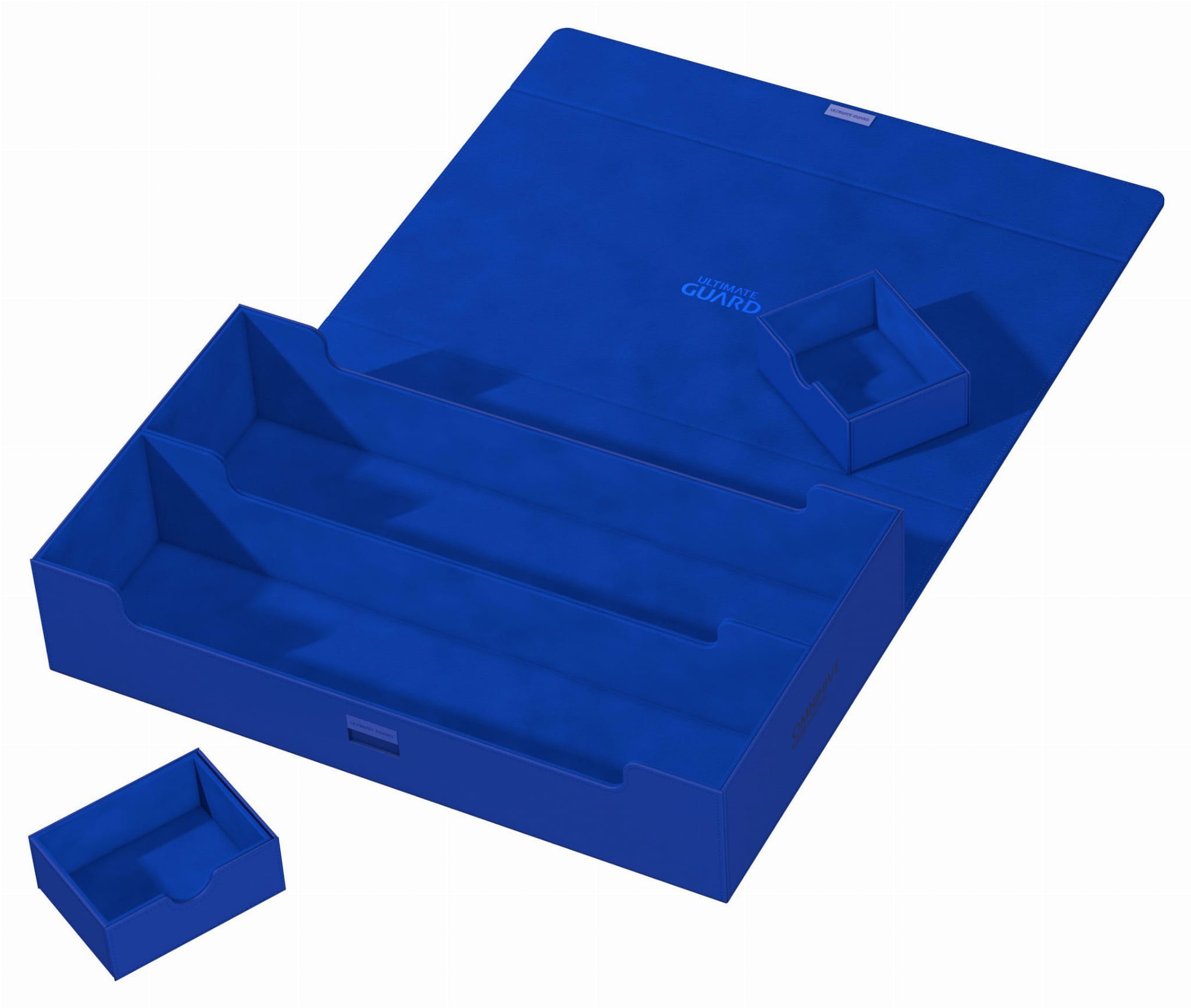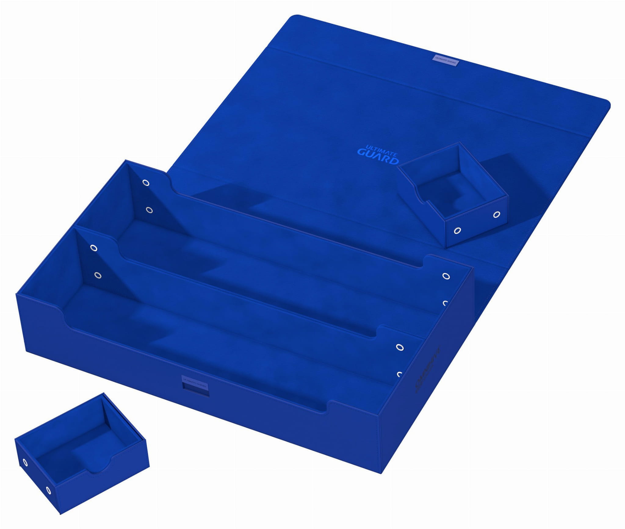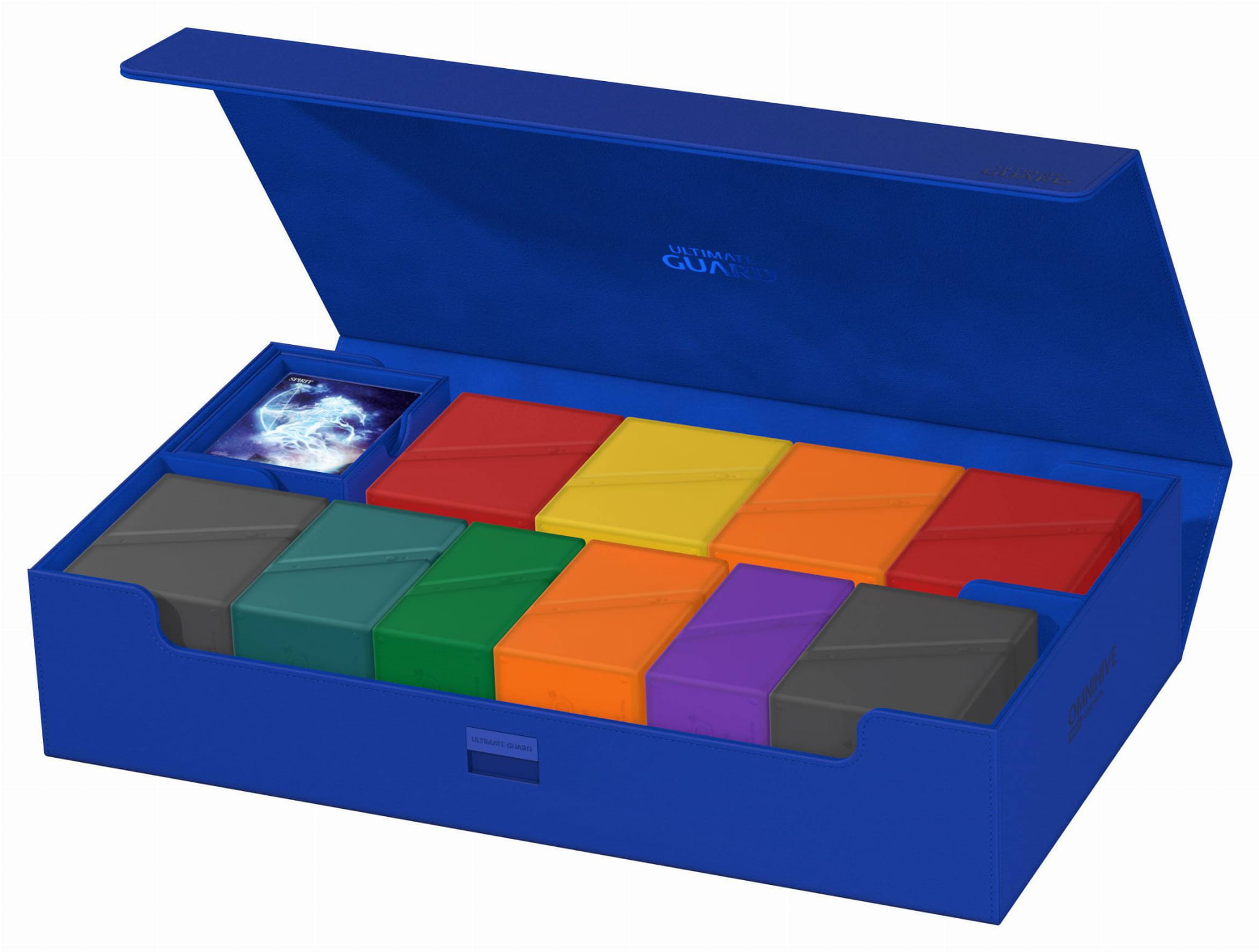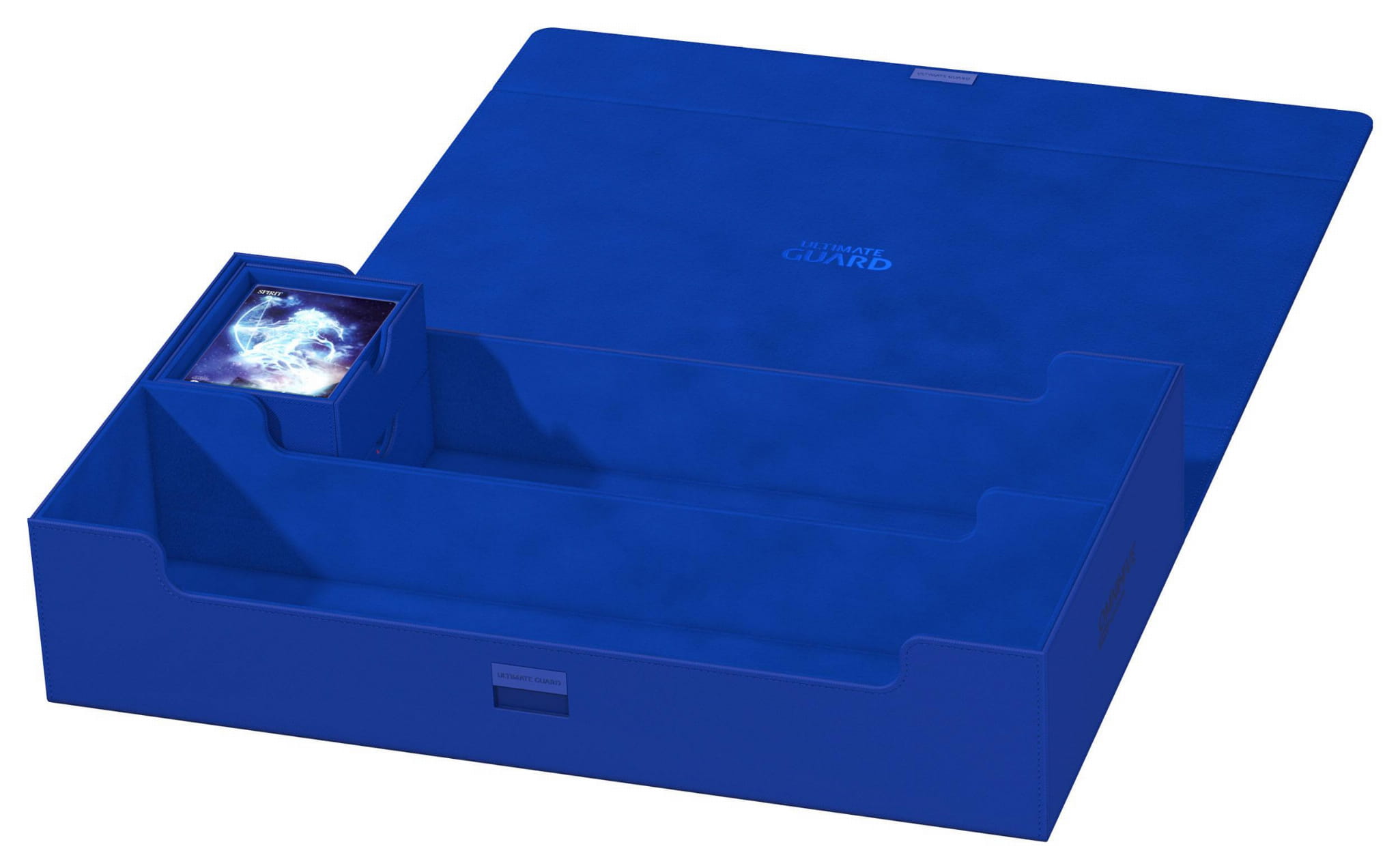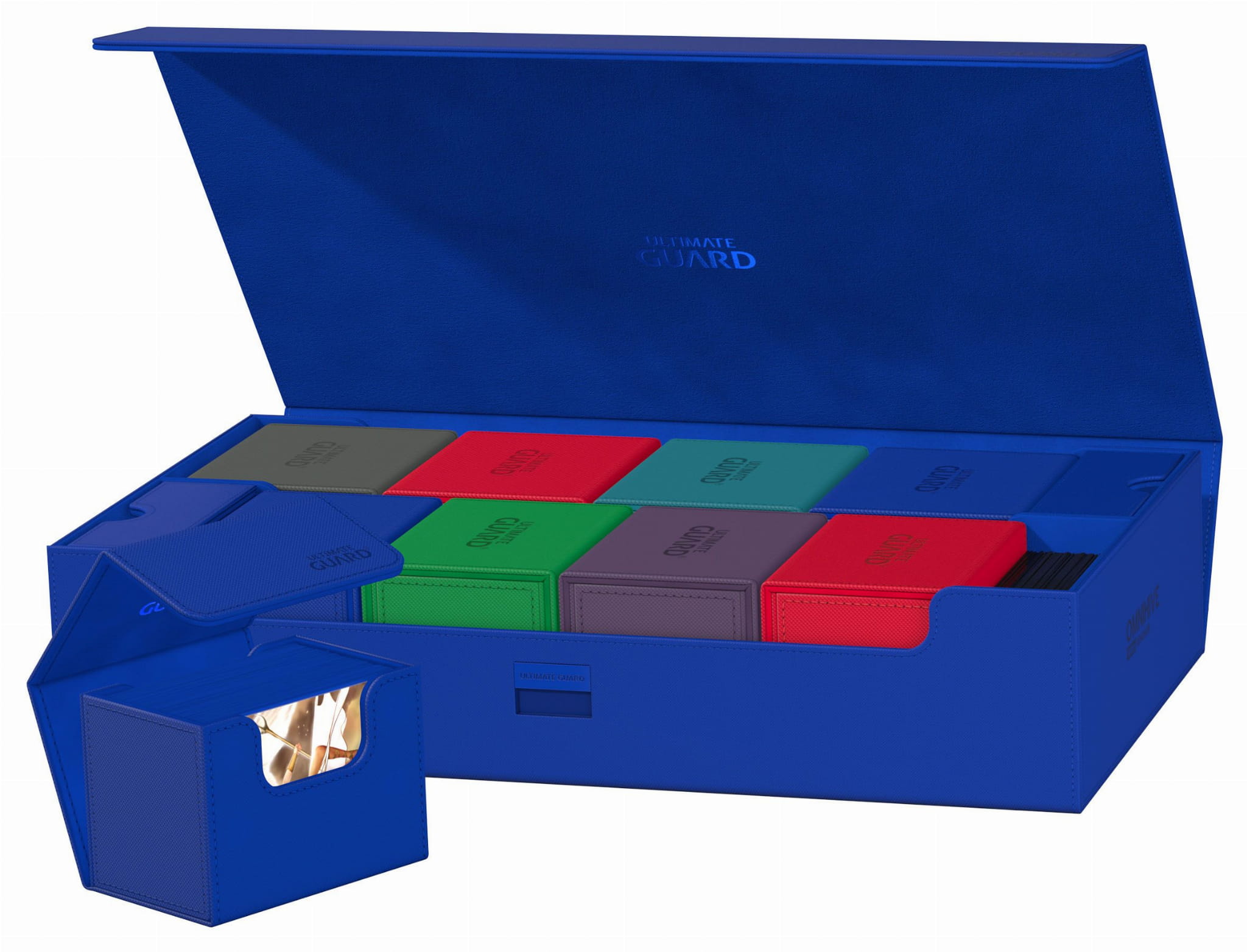 Introducing the new Omnihive 1000+! The ultimate spacious and flexible box for storing large collections. This box can hold more than 1000 double- sleeved cards or carry multiple decks and/or Play-Mats plus other Ultimate Guard products like the Sidewinder 133+. Two removable, magnetic, adjustable and stackable trays make this box unique: it's adaptable for all kinds of games and formats and enables multiple different ways of storing and using your collection.
