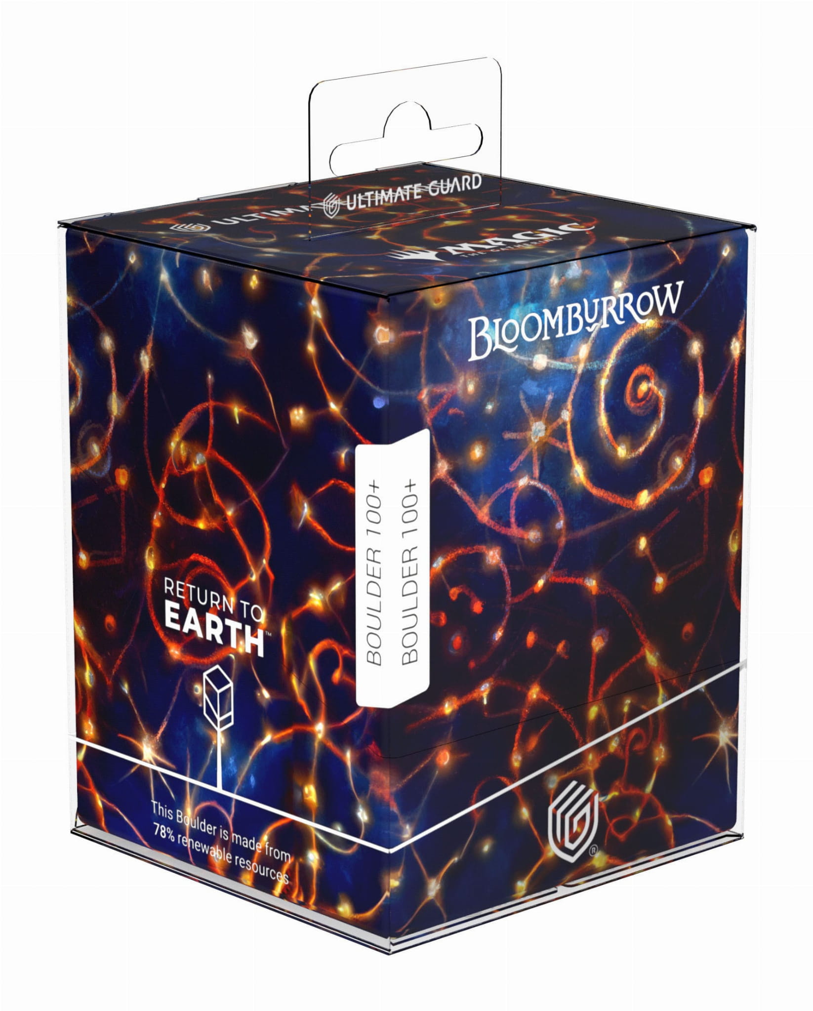 The stolen egg of the Great-Night Owl plays an elemental role in the story of Bloomburrow - and it could soon appear in your collection! It comes in the form of our RTE Boulder 100+, based on the officially licensed Magic: The Gathering artwork of the card Dawn's Truce by Justin Gerard. This reliable deck box from our Return to Earth series is made from 78% renewable raw materials and printed in Germany; in addition, the packaging is made from 100% recycled material. The RTE Boulder 100+ can hold up to 100 double-sleeved or 120 single-sleeved cards.