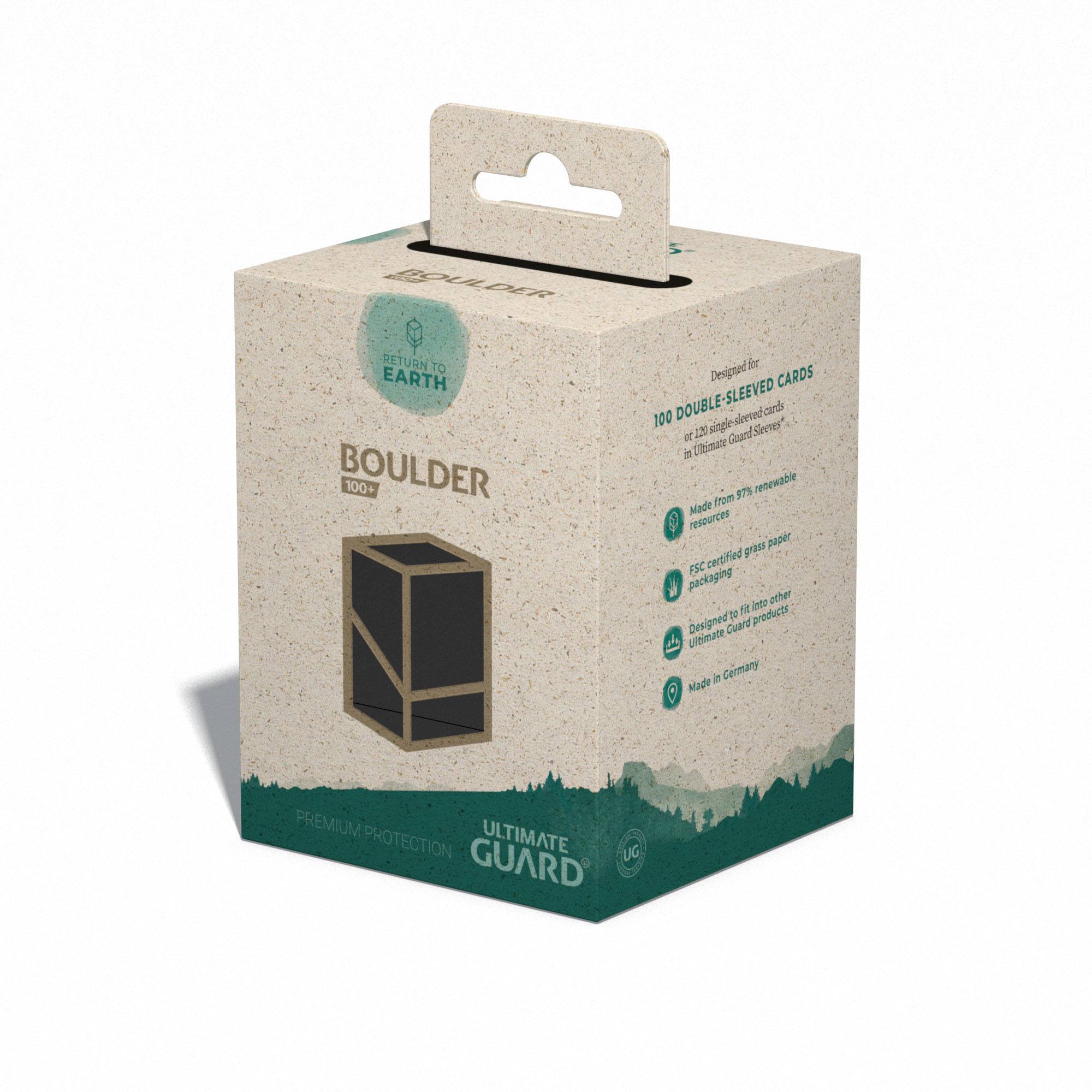 Developed and produced in Germany, this handy and solid Boulder 100+ with super-easy opening consists of 97% renewable resources, with a FSC certified grass paper packaging. The deck case is recyclable and holds up to 100 double-sleeved or 120 single-sleeved cards when using Ultimate Guard Sleeves.