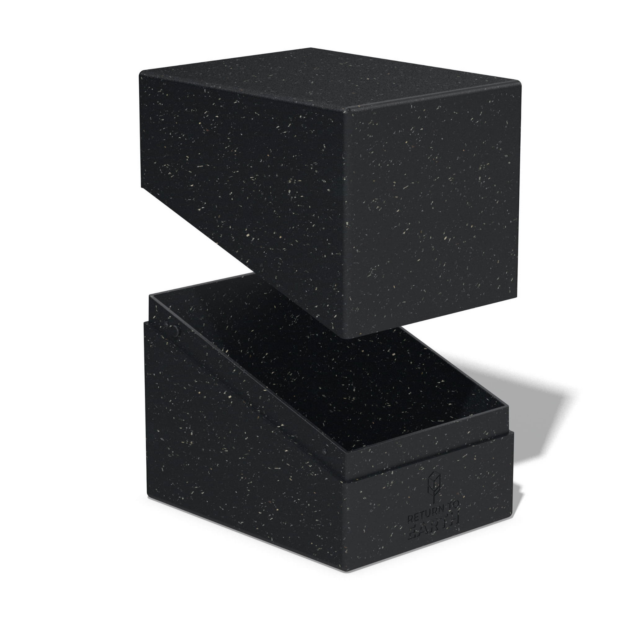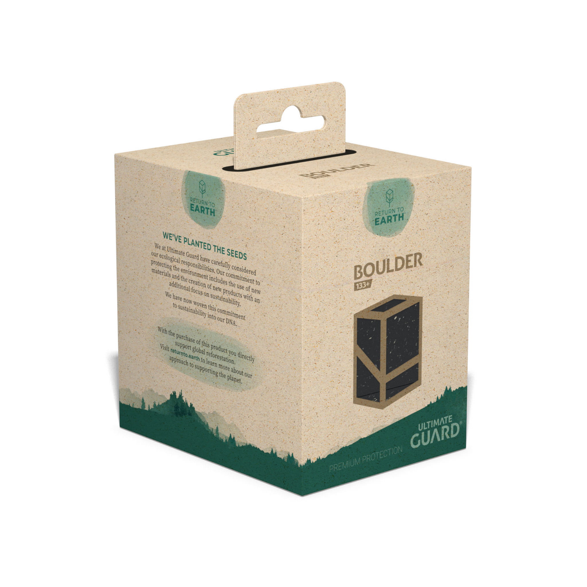 Ultimate Guard is very proud to present the bigger version of the world's first sustainable TCG deck box: the Ultimate Guard RTE Boulder 133+. With the Return to Earth line, you don't need to compromise between your hobby and your ambitions to make more sustainable choices. Now you can have it all - plus more space! Use this box to securely store double sleeved decks of up to 133 cards (optimized for Ultimate Guard sleeves). Go big or go home but be mindful of mother earth in the process.