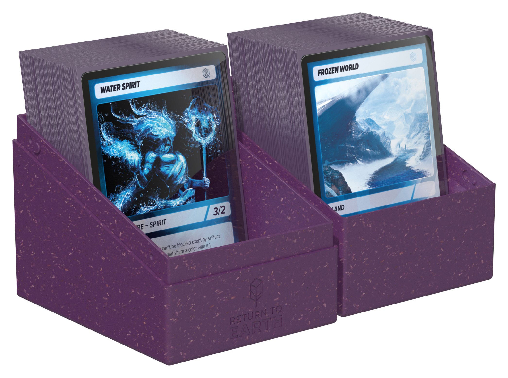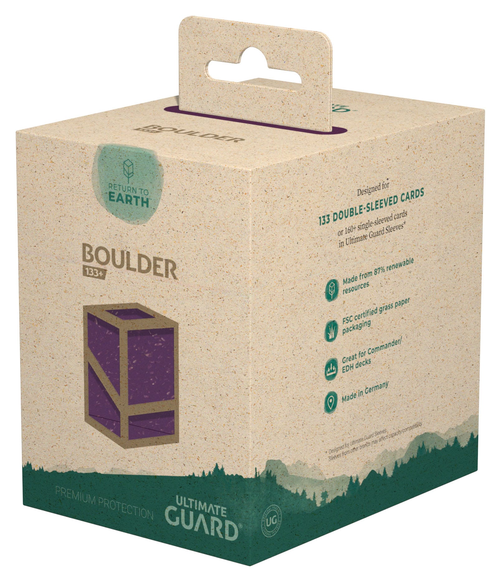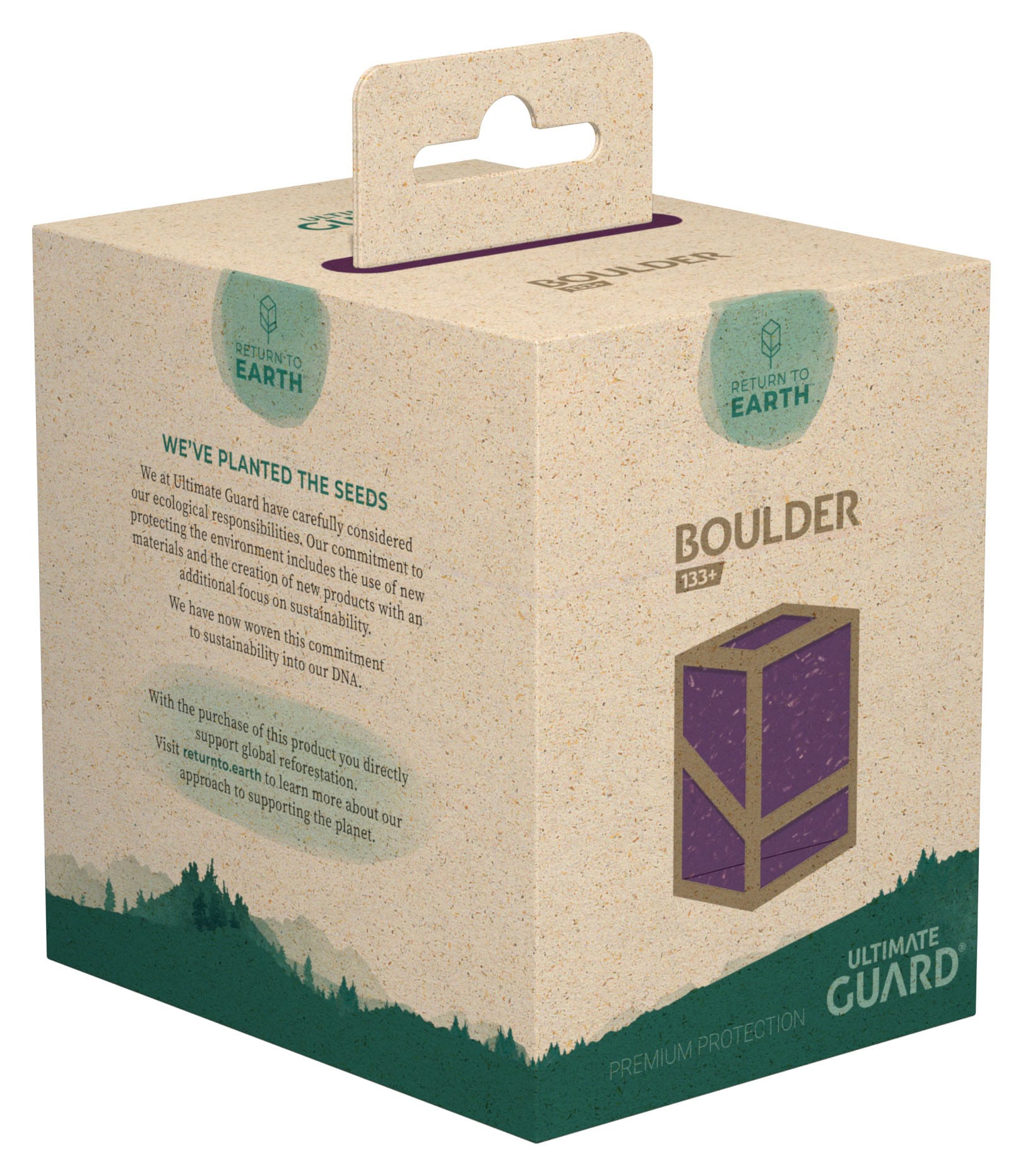 Ultimate Guard is very proud to present the bigger version of the world's first sustainable TCG deck box: the Ultimate Guard RTE Boulder 133+. With the Return to Earth line, you don't need to compromise between your hobby and your ambitions to make more sustainable choices. Now you can have it all - plus more space! Use this box to securely store double sleeved decks of up to 133 cards (optimized for Ultimate Guard sleeves). Go big or go home but be mindful of mother earth in the process.
