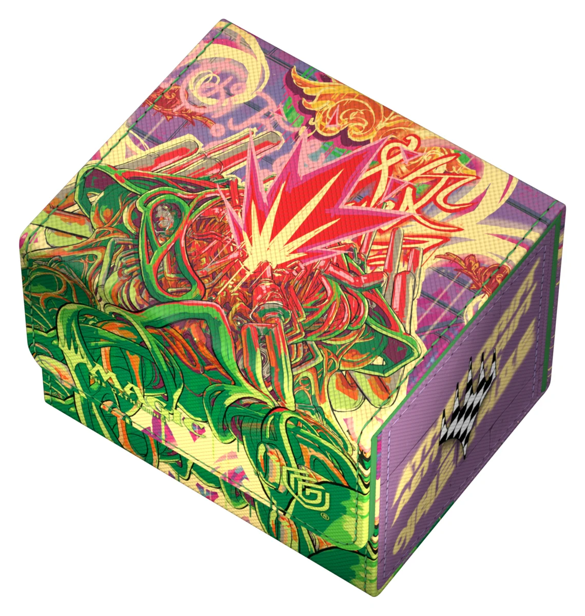 Sidewinder 100+, wykonany z wytrzymałego materiału Xenoskin, mieści do 100 kart (w podwójnej koszulce) lub 120 kart (w pojedynczej koszulce) i jest idealnym pudełkiem na talie Commander/EDH.