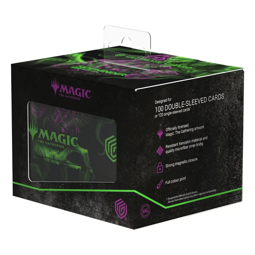Sidewinder 100+, wykonany z wytrzymałego materiału Xenoskin, mieści do 100 kart (w podwójnej koszulce) lub 120 kart (w pojedynczej koszulce) i jest idealnym pudełkiem na talie Commander/EDH.