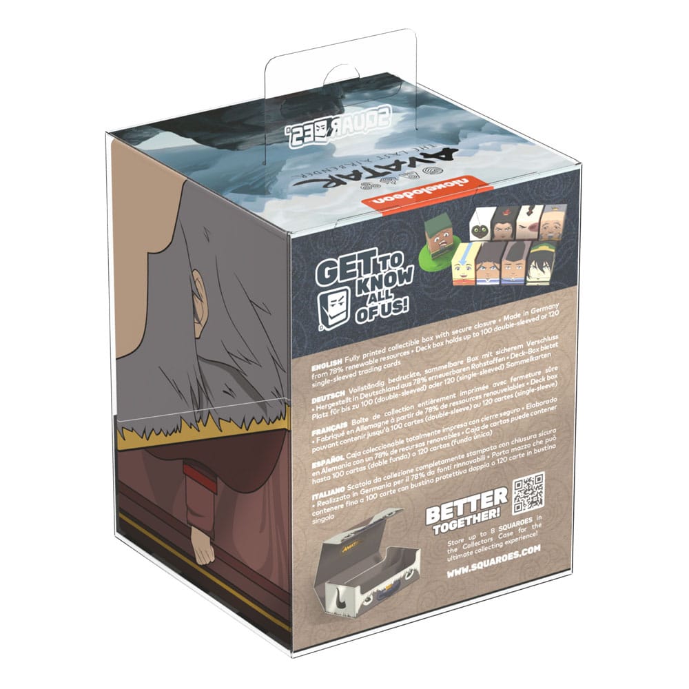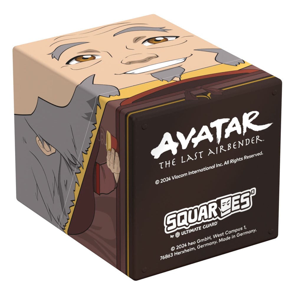Collectible box for storing TCG decks, tabletop gaming accessories, and/or collectibles. The Iroh Squaroe from the Avatar: The Last Airbender™ edition holds up to 100 cards in double protective sleeves if used as a deck box. Squaroes are made from 78% renewable recources and fit perfectly into the separately available Collectors Case.----------------------------------------------------------------------------------------------------------