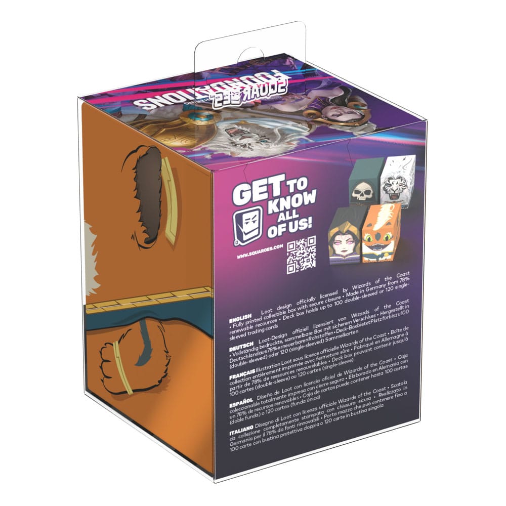 Collectible box for storing your deck, tabletop gaming accessories, and/or collectibles. Squaroe from the Magic: The Gathering edition holds up to 100 cards in double protective sleeves if used as a deck box. Squaroes are made from 78% renewable resources.