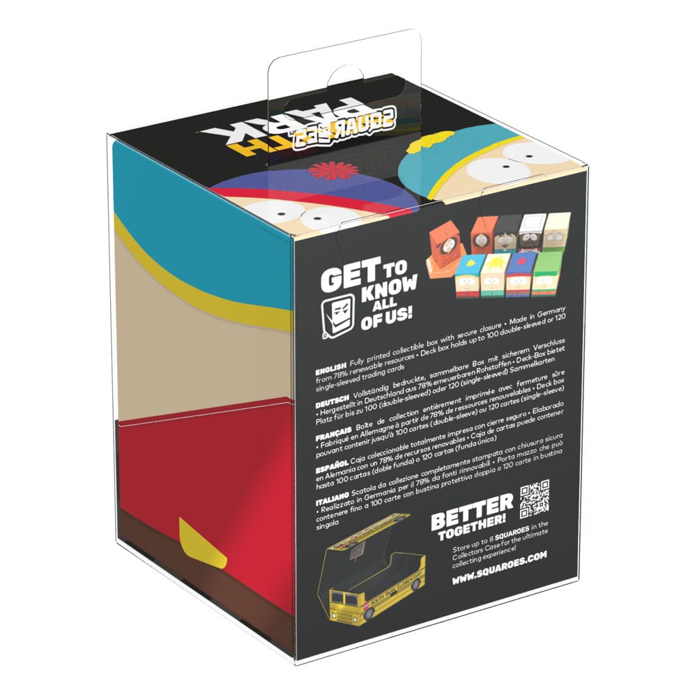 Collectible box for storing TCG decks, tabletop gaming accessories, and/or collectibles. Squaroe from the South Park™ edition holds up to 100 cards in double protective sleeves if used as a deck box. Squaroes are made from 78% renewable recources and fit perfectly into the separately available Collectors Case.