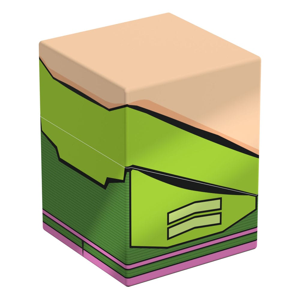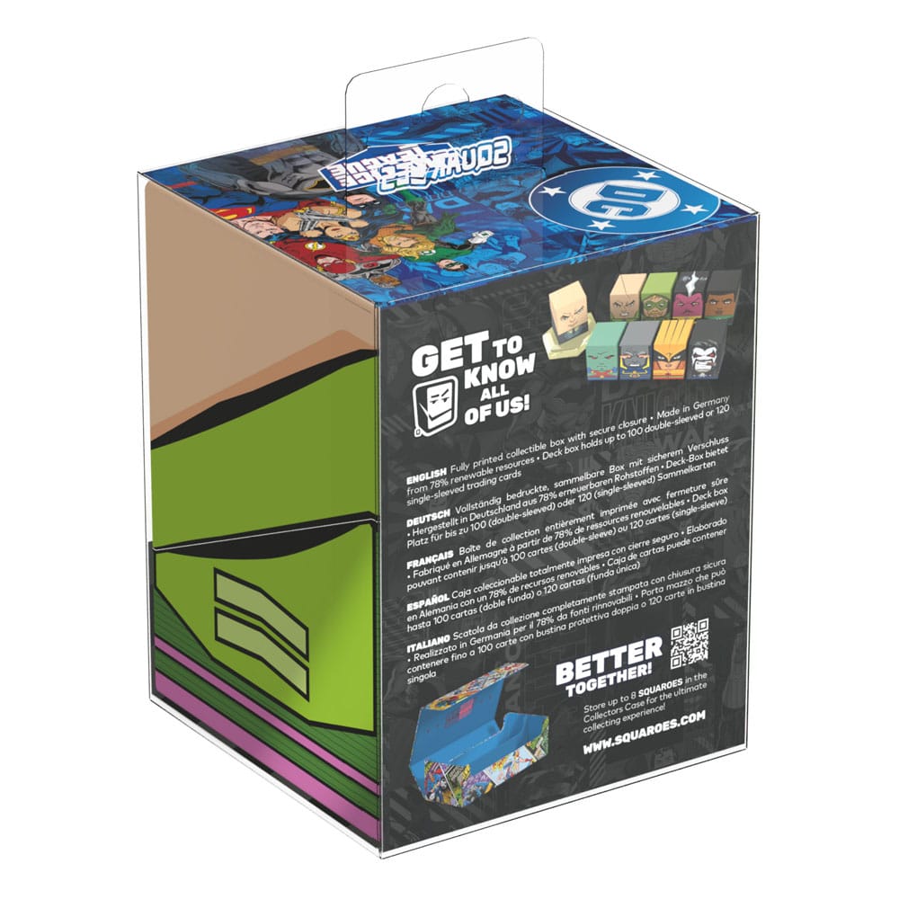 Collectible box for storing TCG decks, tabletop gaming accessories, and/or collectibles. The Lex Luthor™ Battlesuit Squaroe from the DC Justice League™ edition holds up to 100 cards in double protective sleeves if used as a deck box. Squaroes are made from 78% renewable recources.