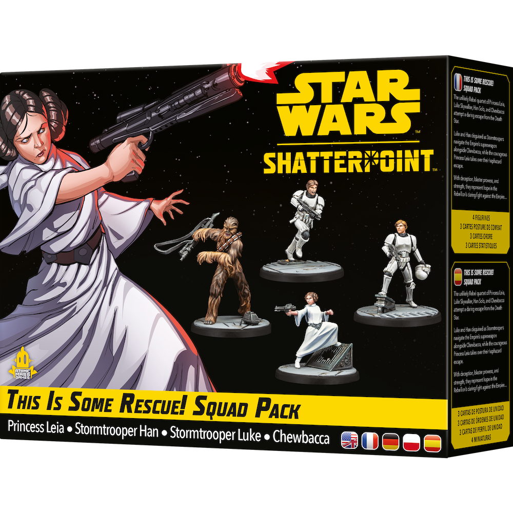 Star Wars: Shatterpoint - Też mi ratunek: Księżniczka Leia to rozszerzenie wprowadzające do gry oddział złożony z 4 nowych jednostek. Wśród nich znajdują się Księżniczka Leia, Luke Skywalker oraz Han i Chewie. Zestaw zawiera wszystko, co niezbędne, by dodać jednostki do swojej drużyny.