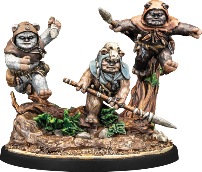 Nieoczekiwani bohaterowie pojawiają się w przeddzień bitwy o Endor! Opowieści C-3PO o Rebelii zachęciły dzielnych Ewoków do rzucenia wyzwania siłom Imperium na leśnym księżycu, a mieszkańcy wioski Jasnego Drzewa odegrali kluczową rolę w tym niezwykle istotnym starciu. Wierząc, że to historie przekazane przez bóstwo, wojownicy tacy jak szaman Logray, zwiadowca Wicket i wielu przebiegłych Ewoków myśliwych połączyło siły z C-3PO i jego towarzyszem R2-D2, aby stać się małymi, ale dzielnymi bohaterami Rebelii.