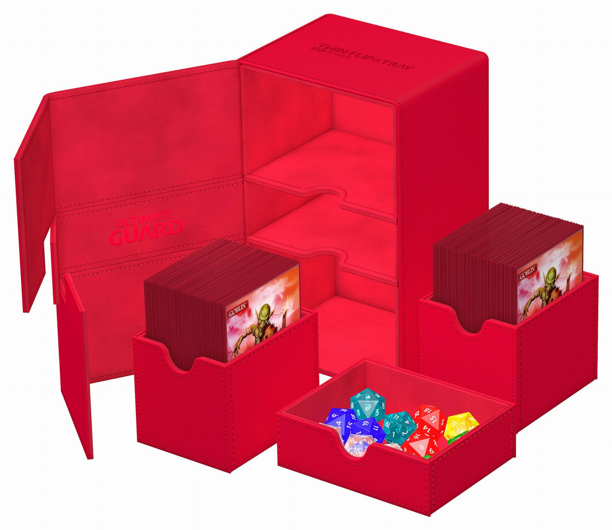 One box, two card decks, and additional accessory tray: Our Twin Flip'n'Tray 160+ offers all the features a great deck box needs. Doubling the size of our classic Flip'n'Tray 80+, this box is the bigger sibling everyone is looking for. The Twin Flip'n'Tray 160+ can hold 160 double-sleeved or 200 single-sleeved standard sized cards*.