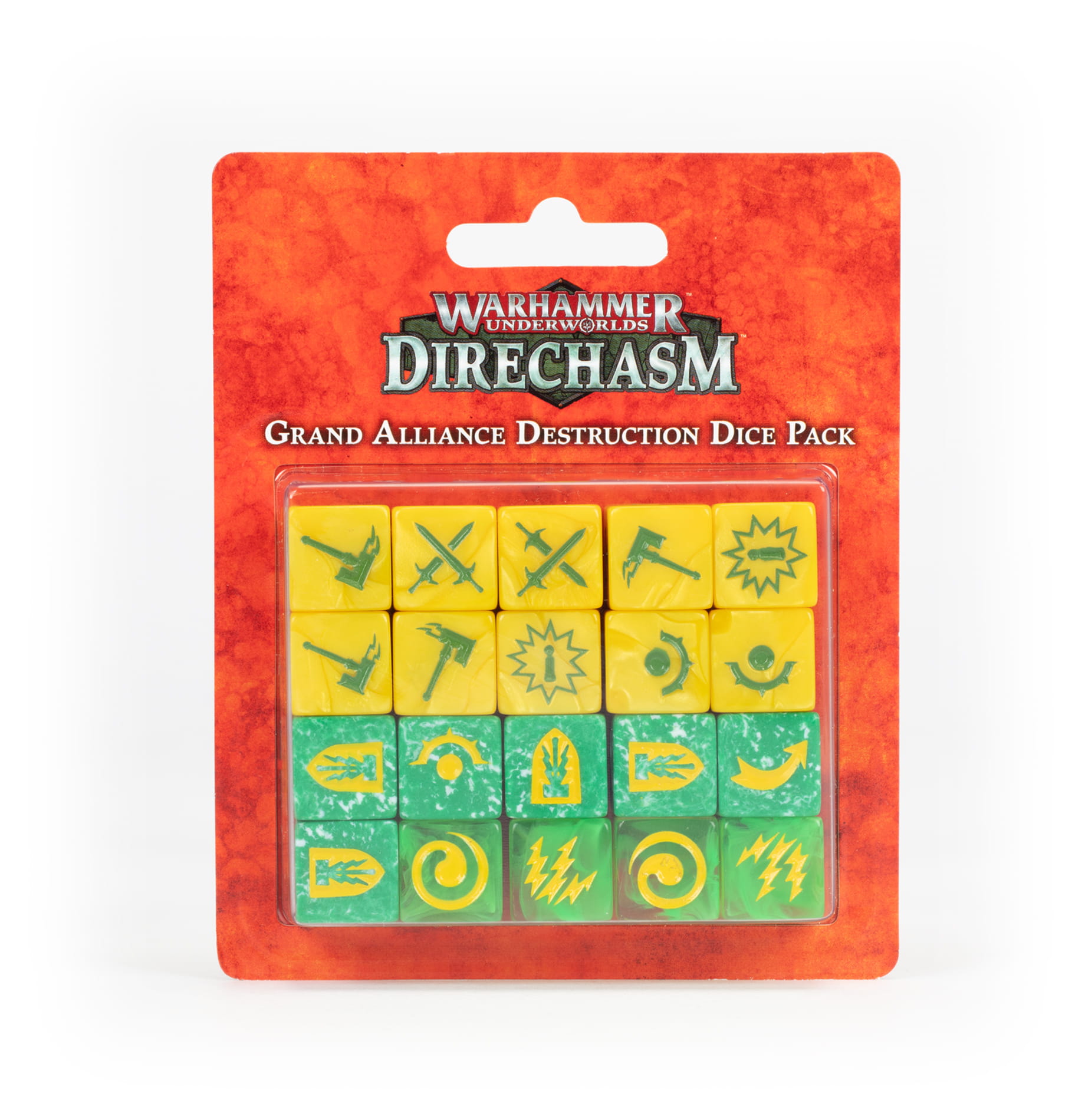 Show your loyalty to the Grand Alliance Destruction with these dice for Warhammer Underworlds. This pack contains all of the dice that you need to play the game as you seek to loot, ransack, and destroy Direchasm.