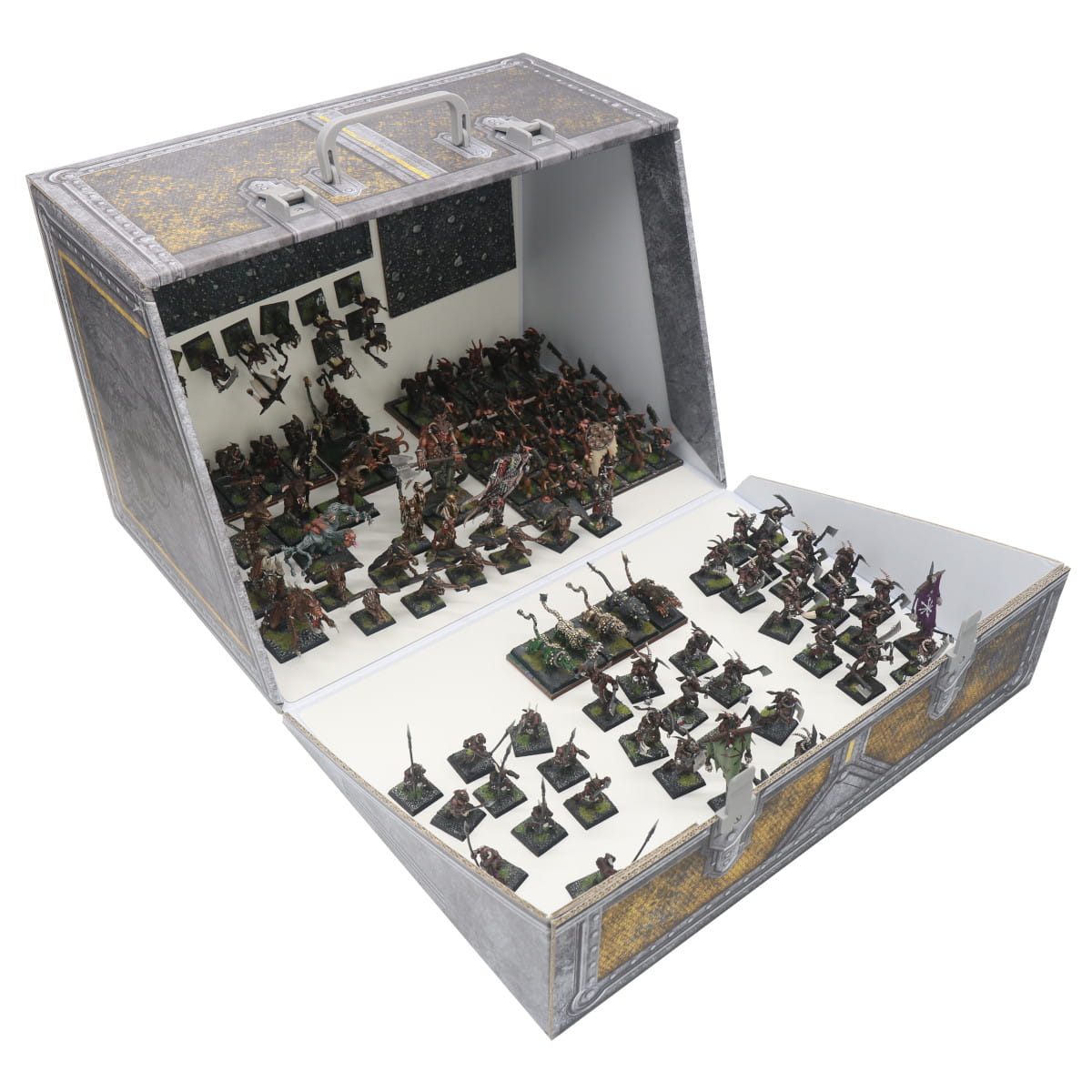 Prezentowany produkt to walizka magnetyczna dedykowana do przenoszenia największych modeli z gier bitewnych na zmagnesowanych podstawkach.